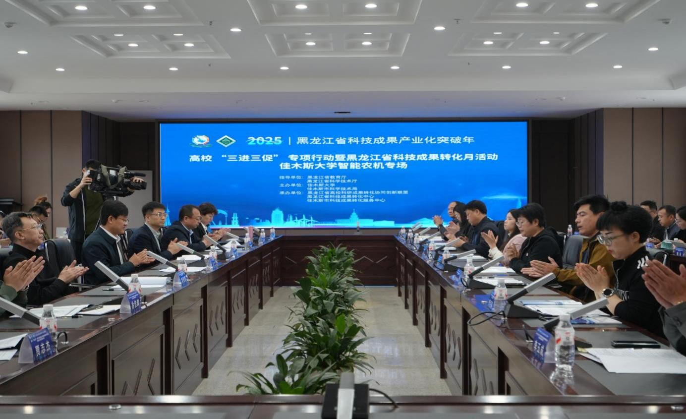 6月11日,黑龙江省高校“三进三促”专项行动智能农机专场在佳木斯大学举行。省教育厅副厅长曹叠峰、省科技厅副厅长王晓浒、佳木斯市副市长窦鹏辉出席活动。各高校主管科技成果转移转化相关部门负责人、国家和省级大学科技园负责同志、科研院所、投融资机构相关同志等参加活动。我校副校长孙世钧、社会合作与成果转化中心(新农村发展研究院)主任(院长)李其林、工程学院副院长李龙海、副教授侯守印参加活动。