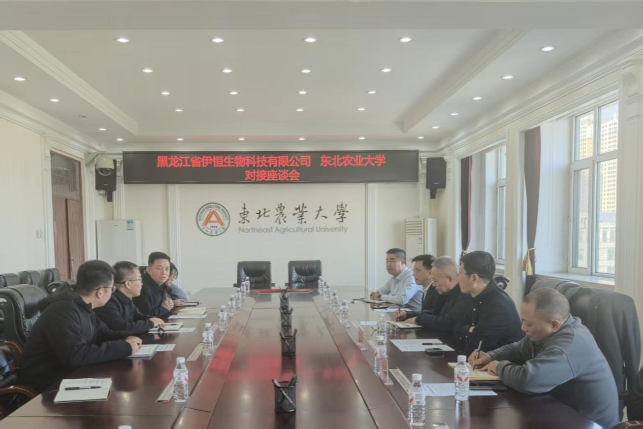 10月16日上午,黑龙江伊恒生物科技有限公司一行5人赴东北农业大学开展校企合作对接座谈。黑龙江伊恒生物科技有限公司、白银赛诺生物科技有限公司董事长丁少明,黑龙江省玉米行业协会副会长、秘书长杨兴,黑龙江伊恒生物科技有限公司、白银赛诺生物科技有限公司首席科学家雷雨,黑龙江伊恒生物科技有限公司总经理王大春等企业代表,东北农业大学生命科学学院院长李杰、社会合作与成果转化中心(新农村发展研究院)副主任(副院长)康立功,校企合作科副科长杨宇庭出席座谈会。会议由康立功主持。