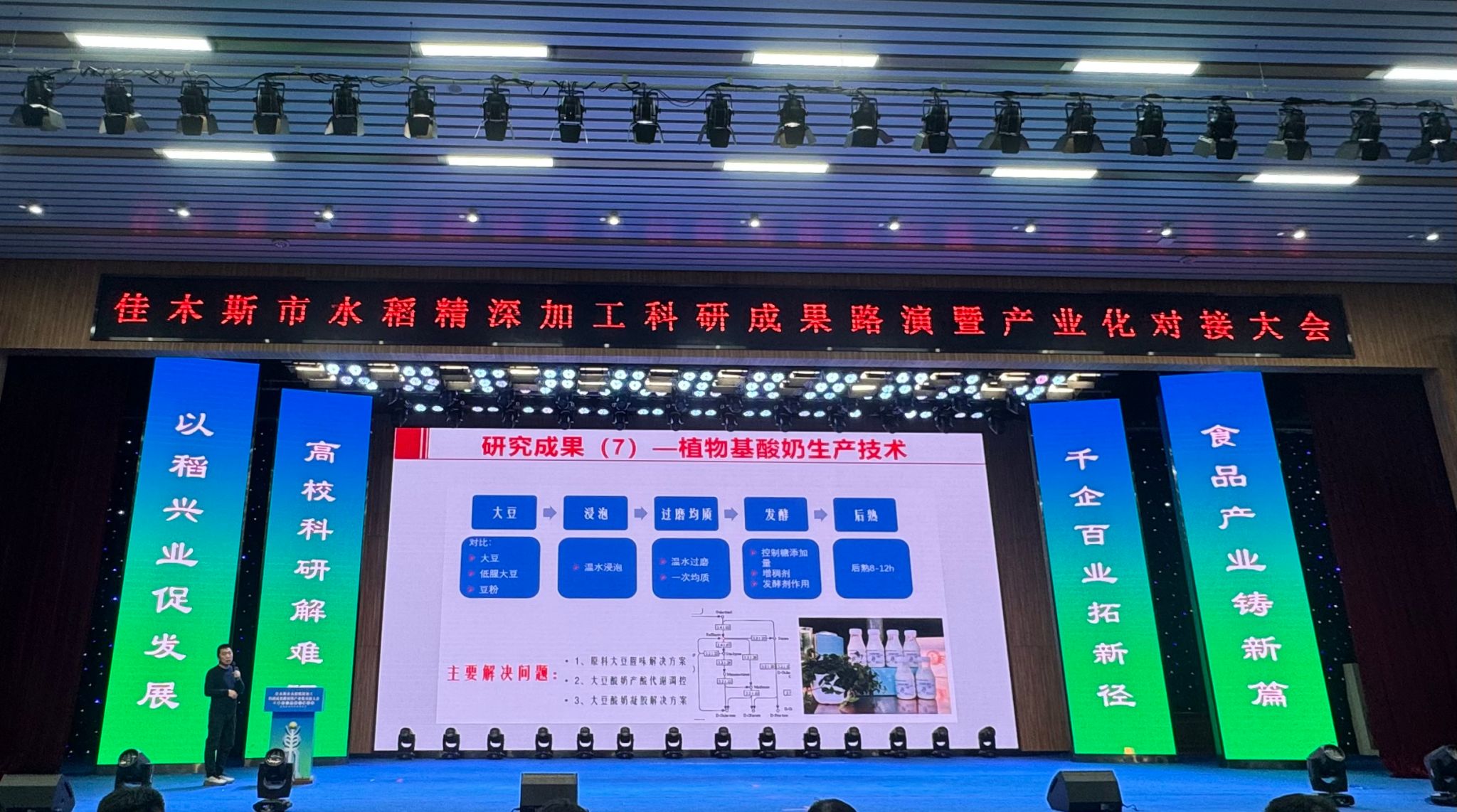 10月18日至19日,我校参加佳木斯市水稻精深加工科研成果路演暨产业化对接大会。来自江南大学、黑龙江省农科院等17家高校和科研院所的50余名专家学者,以及全市重点食品企业代表等350余人参加了大会。我校社会合作与成果转化中心(新农村发展研究院)副主任(副院长)常敬礼,食品学院乳品工程系主任杜鹏等一行参加对接大会。大会开幕式上,佳木斯市委副书记、市长王铁,省科技厅副厅长安建光,省工信厅副厅长羿宗胤分别致辞。
