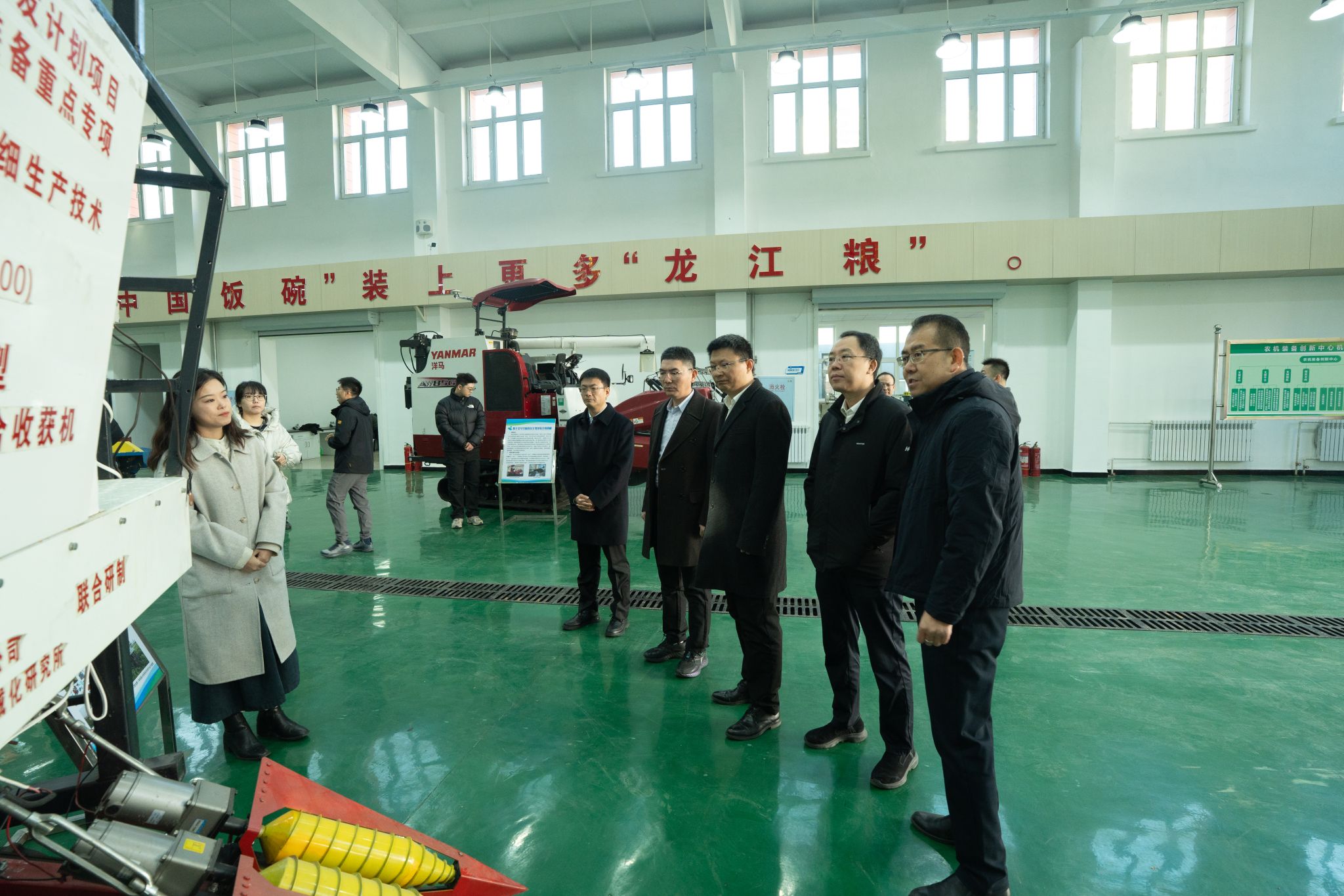 在农机装备创新中心,工程学院院长李岩介绍了创新中心整体机构设置,各相关负责人分别介绍了割前脱粒收获机器系统、4UZL-2型胡萝卜智能联合收获机等农机装备。此外,苑严伟一行还参观了农产品加工实验室、收获机械实验室、农业农村部北方马铃薯全程机械化科研基地(东北地区)等。